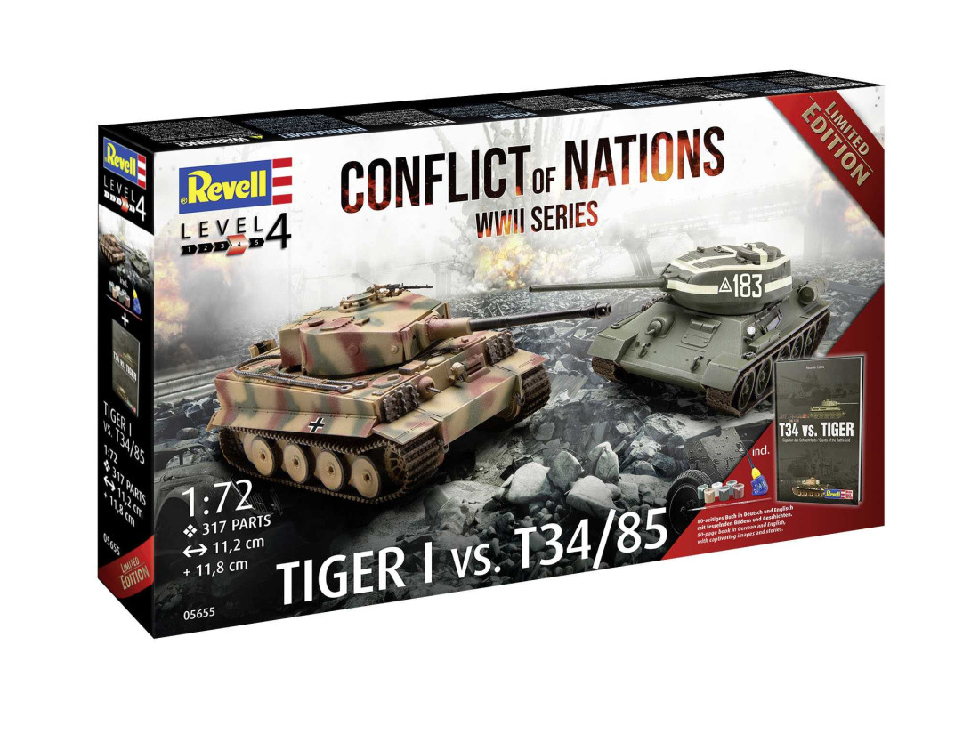Wyślij zapytaniePlastikowy model niemieckiego czołgu ciężkiego Tygrys I i radzieckiego czołgu średniego T-34/85.