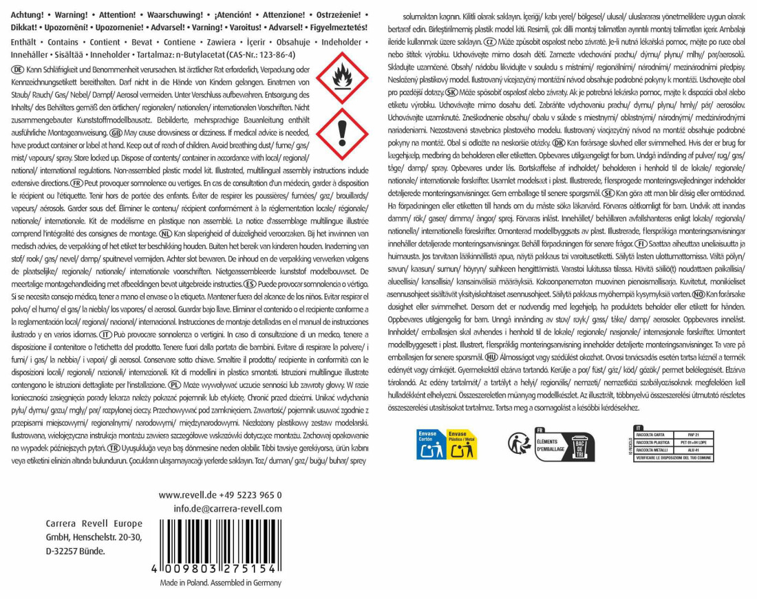 • zestaw zawiera 3 podstawowe farby akrylowe Revell (5 ml), klej do modeli plastikowych Revell Contacta Professional Mini oraz pędzel.