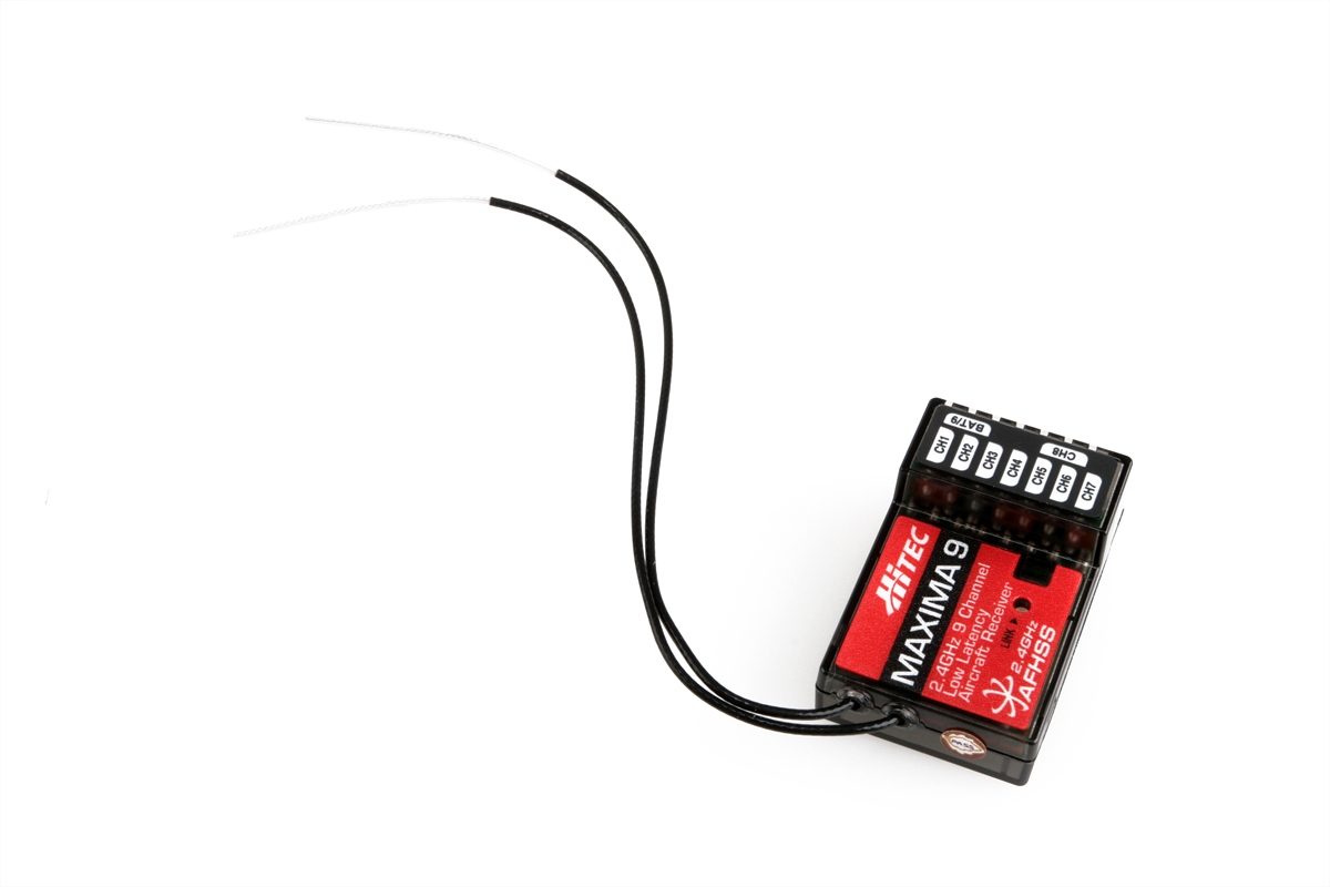 Miniaturowy dziewięciokanałowy odbiornik 2,4 GHz w plastikowej obudowie z superszybkim jednokierunkowym systemem AFHSS Hitec bez telemetrii, pełnym zakresem i zwiększonym zakresem napięcia zasilania (4-5 Ni-xx, 1-2s Li-poly). Do odbioru sygnału używana jest para anten. Odbiornik przeznaczony jest do stosowania w modelach wszystkich kategorii; Dzięki miniaturowym wymiarom, niskiej wadze i niskiemu poborowi prądu, urządzenie to nadaje się również do bardzo lekkich modeli samolotów przeznaczonych do użytku wewnątrz pomieszczeń lub małych śmigłowców.