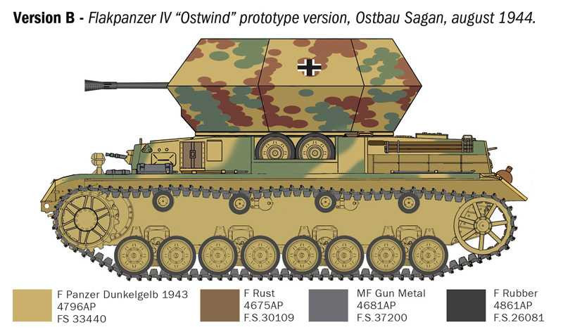 Pod koniec 1944 roku do Wirbelwind dołączył jeszcze potężniejszy Ostwind, który został wyposażony w działo przeciwlotnicze Flak 43 kal. 37 mm. Nowe uzbrojenie przeciwlotnicze zapewniało większy zasięg i było chronione przez mocną, charakterystycznie wyglądającą tarczę umieszczoną na sześciokątnej, otwartej wieży.
