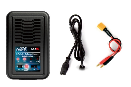 Ładowarka SKY RC e430 z wbudowanym balancerem to bardzo prosta ładowarka typu „box” dla użytkowników rekreacyjnych i pilotów, zasilana sieciowo, do ładowania akumulatorów LiPo i LiFe 2–4S. To idealny dodatek do zestawów „zestawowych”, umożliwiający łatwe ładowanie w domu, a także doskonały towarzysz podróży, gdy nie chcesz „ciągnąć” ze sobą dużej, ciężkiej i drogiej ładowarki. Moc ładowarki wynosi 30 W; Za pomocą przełącznika suwakowego można ustawić natężenie prądu ładowania na 1, 2 lub 3 A.