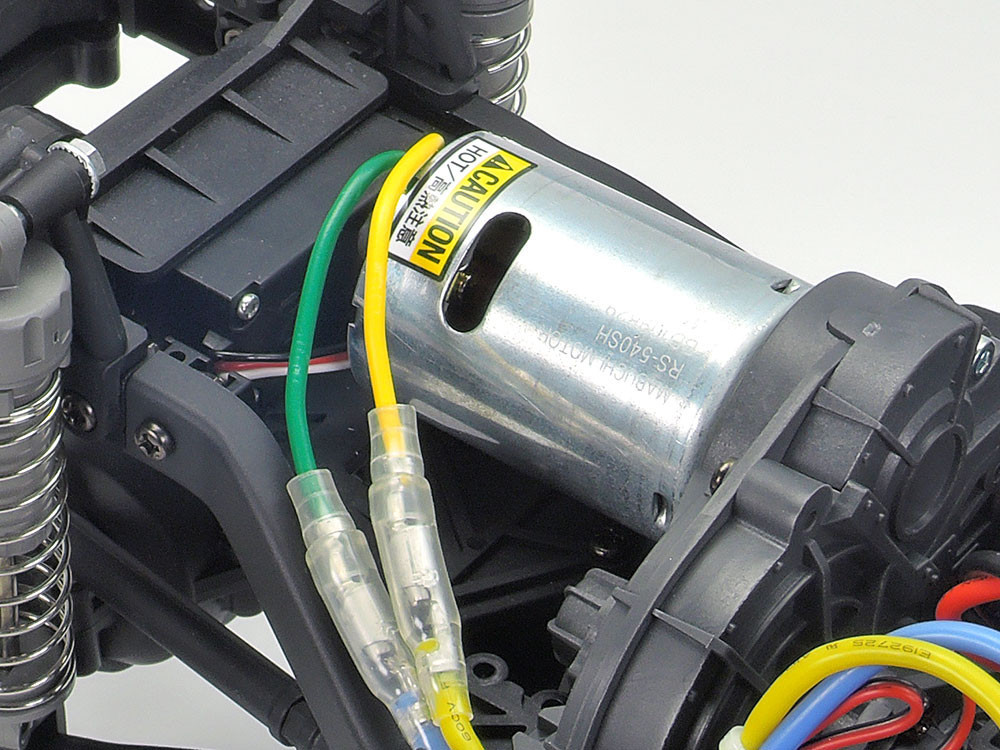 - W skład zestawu wchodzi jednostka napędowa w postaci silnika prądu stałego serii 540, regulator prędkości Tamiya TBLE-02S i zestaw oświetlenia LED.