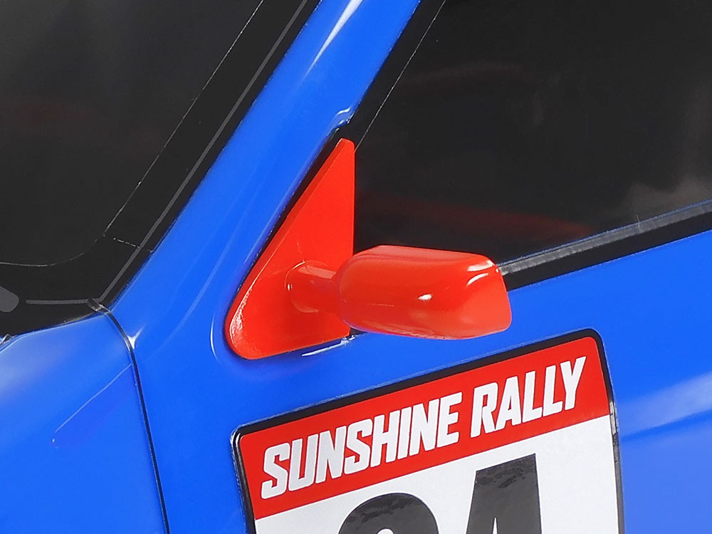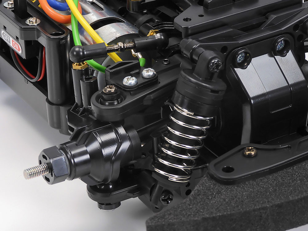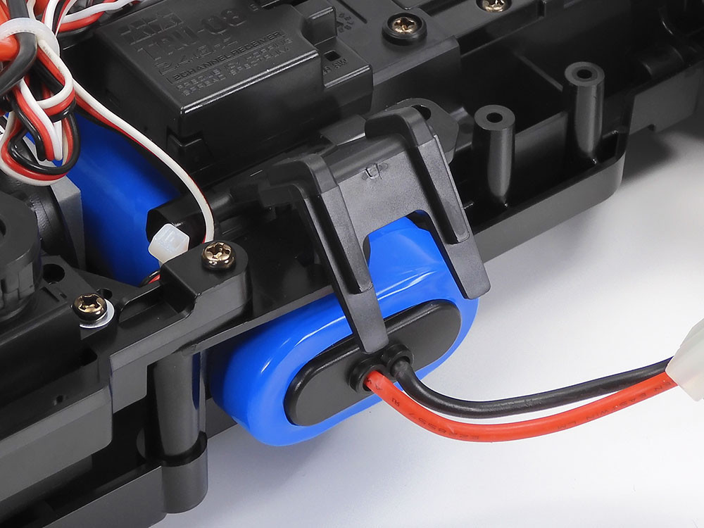 Do obsługi modelu potrzebny będzie co najmniej dwukanałowy zestaw RC (nadajnik i odbiornik), serwomechanizm, regulator prędkości, sześcioogniwowy akumulator 7,2 V oraz odpowiednia ładowarka. Do wykończenia karoserii zalecamy użycie sprayów Tamiya do karoserii Lexan. Zdjęcia elementów elektrycznych mają charakter poglądowy i nie są zawarte w zestawie.