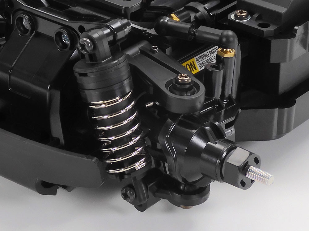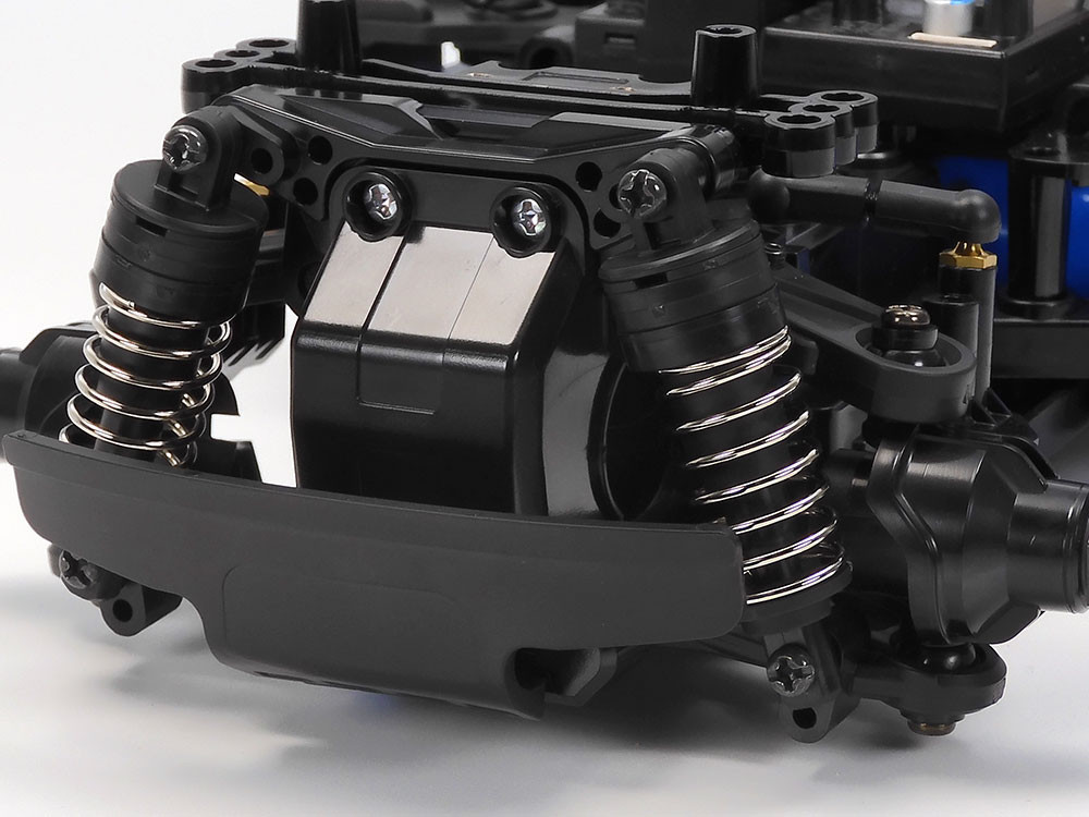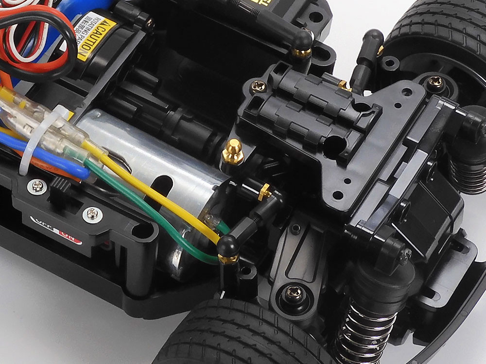 Do obsługi modelu potrzebny będzie co najmniej dwukanałowy zestaw RC (nadajnik i odbiornik), serwomechanizm, regulator prędkości, sześcioogniwowy akumulator 7,2 V oraz odpowiednia ładowarka. Do wykończenia karoserii zalecamy użycie sprayów Tamiya do karoserii Lexan. Zdjęcia elementów elektrycznych mają charakter poglądowy i nie są zawarte w zestawie.