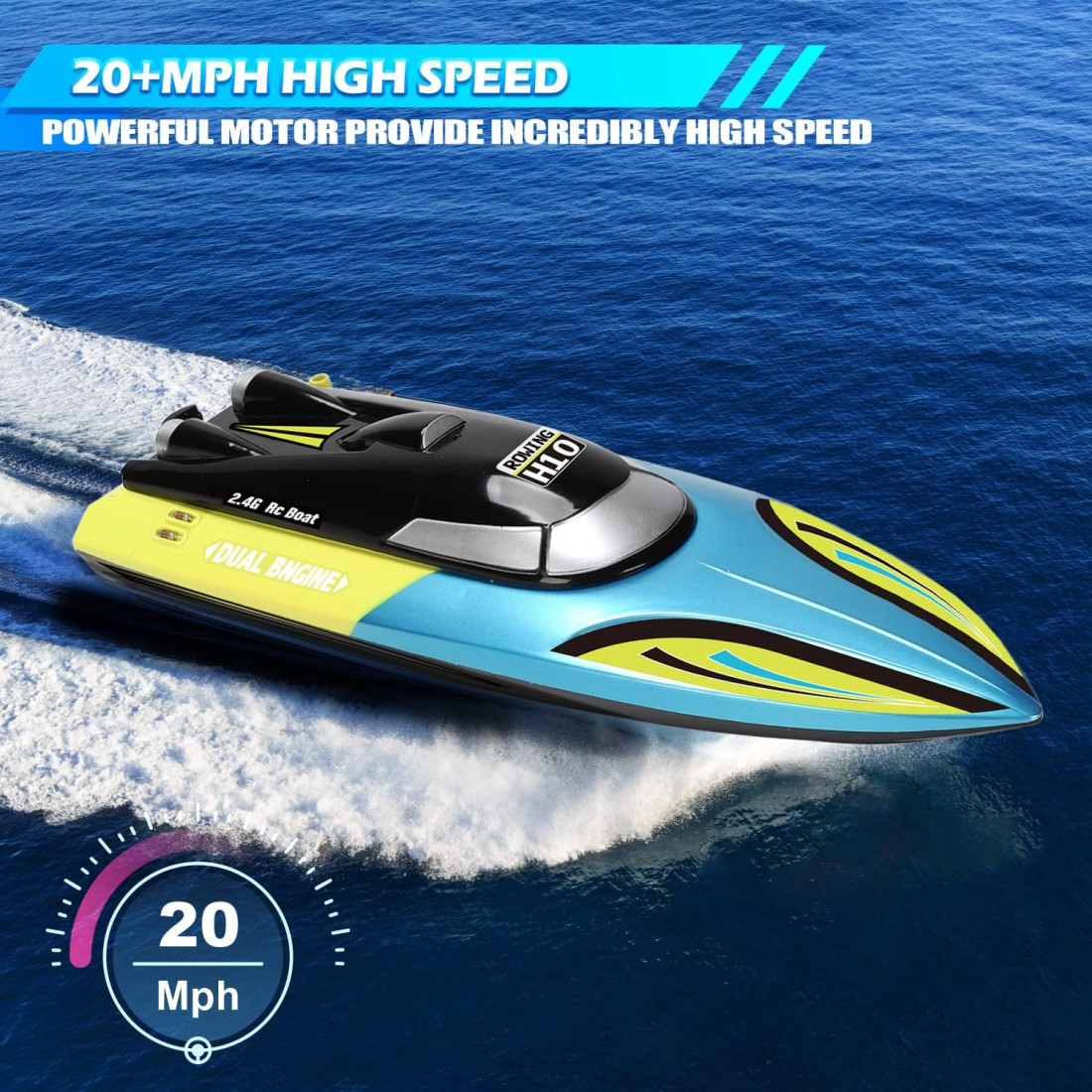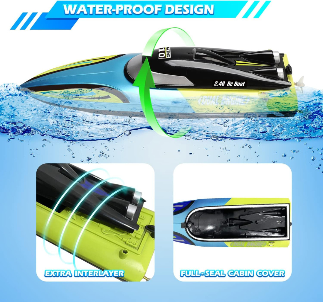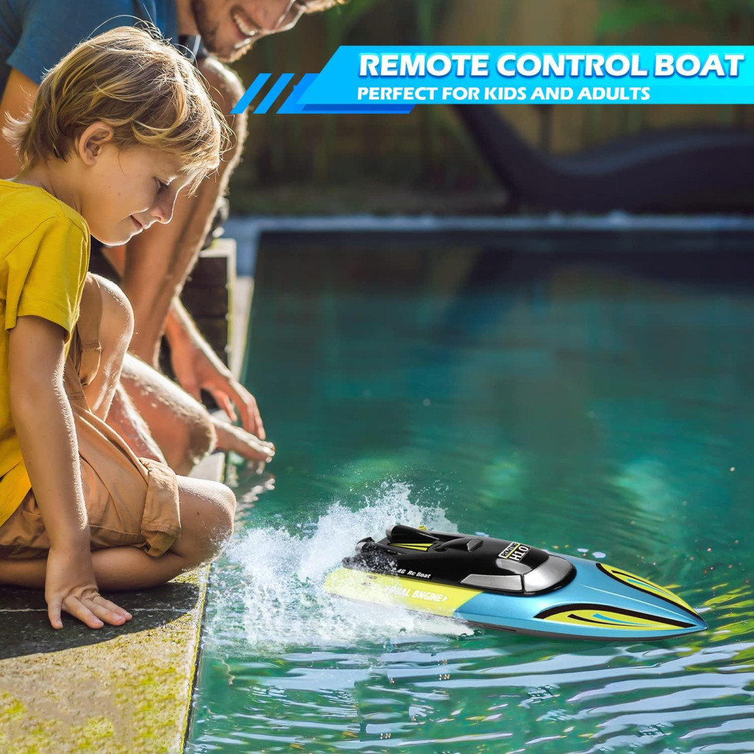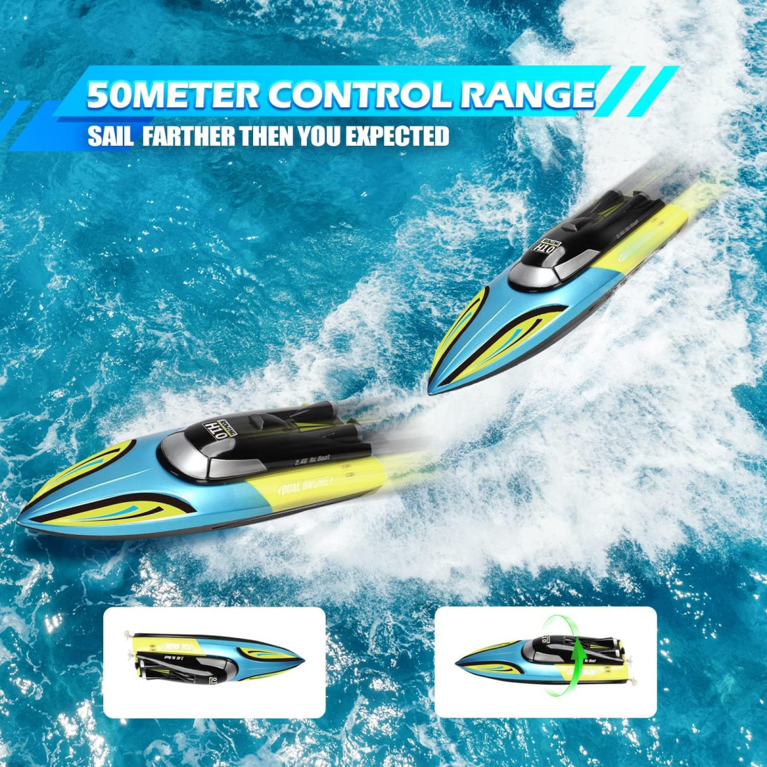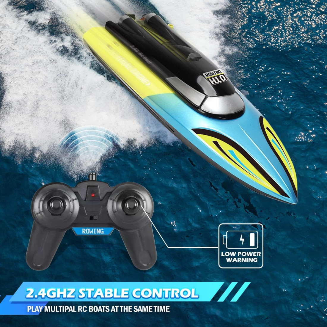 Pilot zdalnego sterowania działa na częstotliwości 2,4 GHz, co pozwala na jednoczesne sterowanie wieloma łodziami bez wzajemnego zakłócania się. Wystarczy umieścić łódź w wodzie, a automatycznie sparuje się z pilotem.
