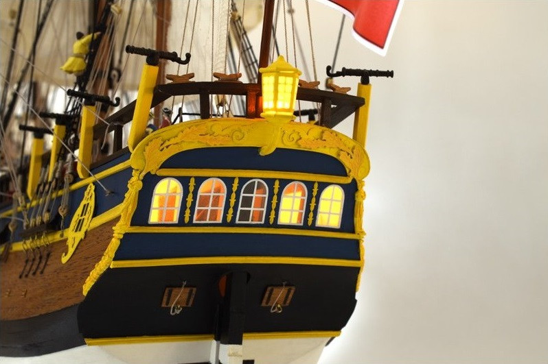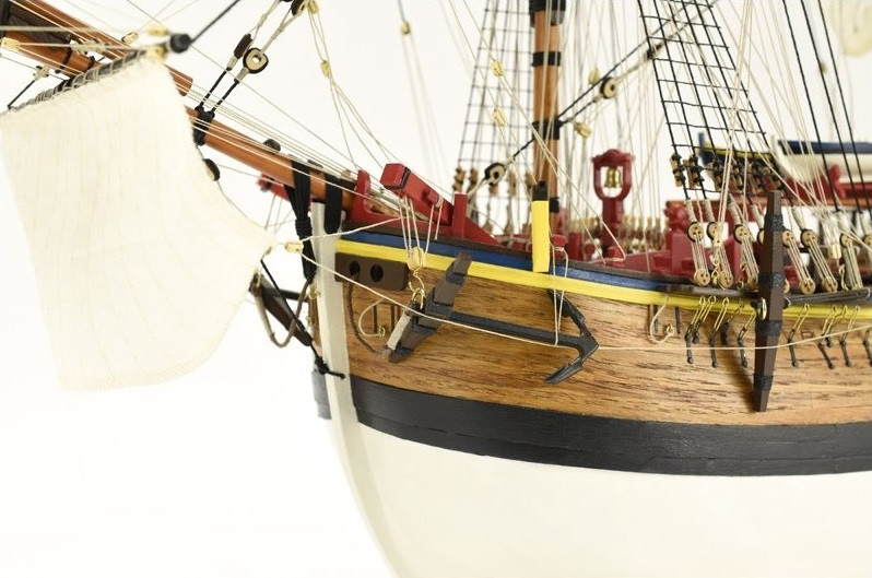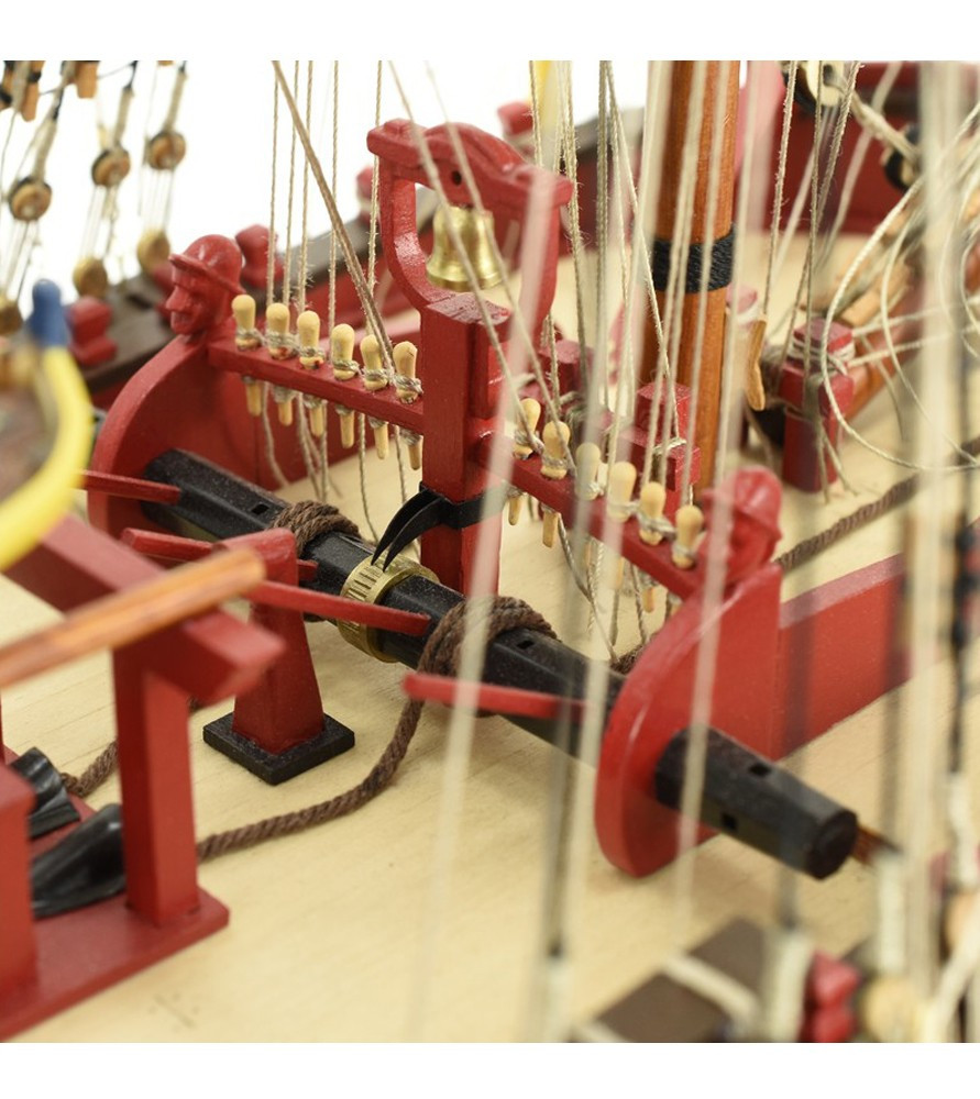 Model zbudowano z wykorzystaniem fałszywego kilu i żeber, podobnie jak w prawdziwych statkach. Kadłub zbudowano w klasycznej technologii strugania skorupowego, w tym przypadku częściowo dwuwarstwowo. Zestaw zawiera precyzyjnie wycinane laserowo części z drewna i sklejki, paski forniru do poszycia kadłuba, mosiężne akcesoria (np. lufy dział, okucia itp.), odlewy metalowe, szyte żagle o autentycznej fakturze, nici, gwoździe i wszelkie inne materiały budowlane.