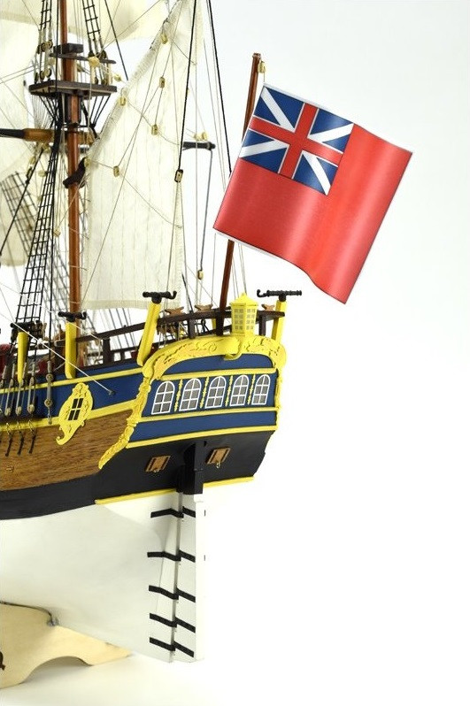 Perfekcyjnie wykonany drewniany model okrętu HMS Endeavour w skali 1:65 z 1768 roku od znanego hiszpańskiego producenta Artesania Latina.