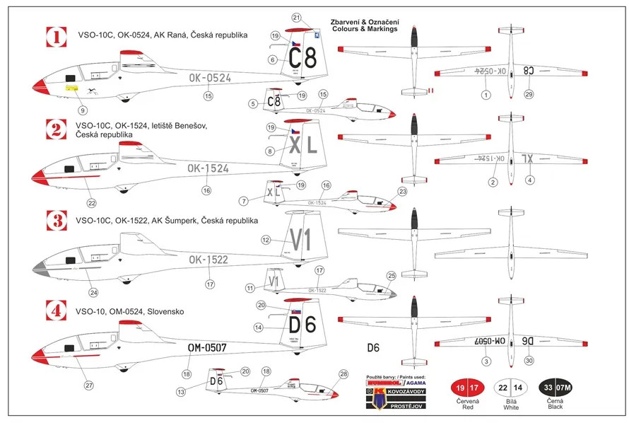Zestaw plastikowy czechosłowackiego jednomiejscowego szybowca o konstrukcji mieszanej, wyprodukowanego przez firmę Kovozávody Prostějov.