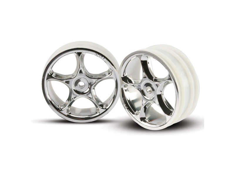Felgi przednie Tracer chromowane. Średnica tarczy 56mm (2.2"), szerokość 24mm. Do samochodów Traxxas Bandit.