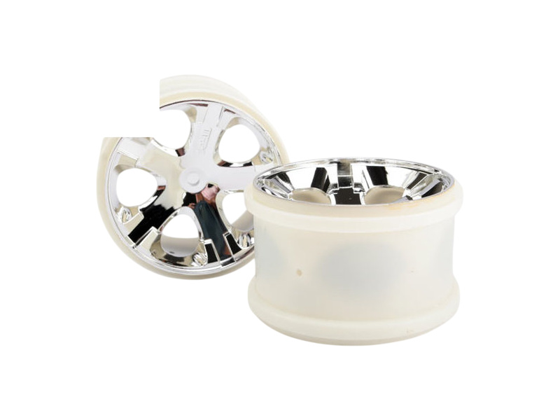Chromowane tylne obręcze kół All-Star ze sterowaniem elektrycznym. Średnica tarczy 2,8", szerokość 48 mm, sześciokąt 12 mm. Do samochodów Traxxas Monster Jam, Stampede, Rustler.
