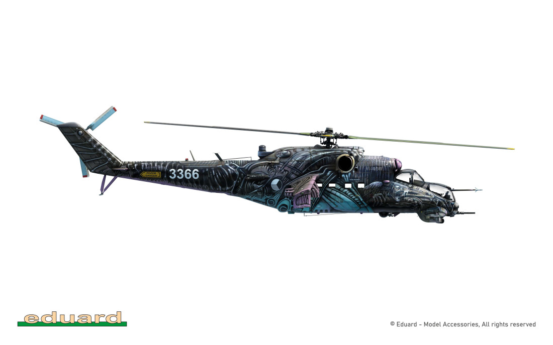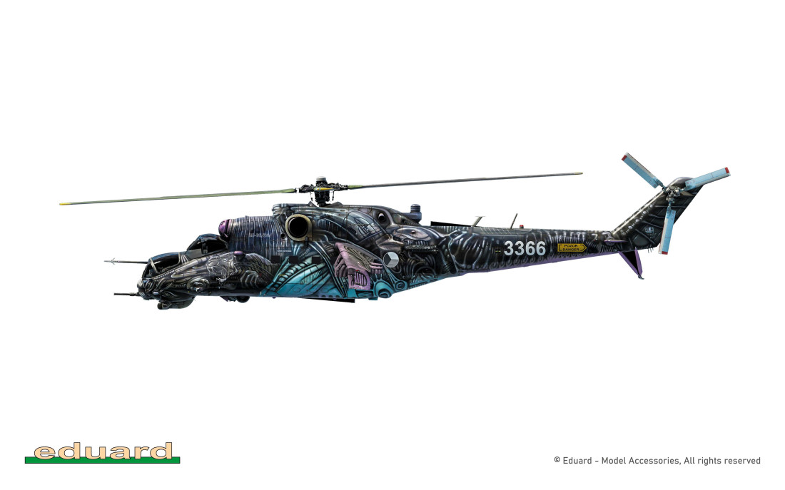 Zestaw radzieckiego śmigłowca szturmowego Mil Mi-35 w limitowanej edycji w skali 1/48. Ten śmigłowiec Czeskich Sił Powietrznych można zbudować z zestawu w kamuflażu z 2016 roku, pomalowanego specjalnie na Tiger Meet w Saragossie w Hiszpanii.