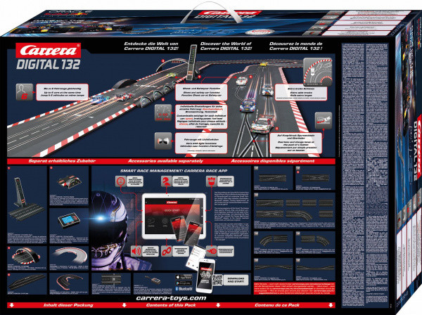 DIGITAL 132 – digitální autodráha umožňující jízdu 6 aut v jedné dráze a jejich vzájemné přejíždění. Carrera znamená ve španělštině závod, a jedno vám můžeme zaručit – jakmile rozbalíte krabici s logem Carrera, rozproudí se vaše závodní krev na nejvyšší otáčky, a je jedno na jakém okruhu a s jakým autem budete zrovna závodit. Tento pocit zažívají tisíce fanoušků již od roku 1963, kdy značka Carrera uvedla na trh svou první závodní autodráhu. Během následujících více než čtyřiceti let se v oblasti autodráh, aut a příslušenství Carrera probojovala až na úplnou špičku. Dnes nabízí produkty nejvyšší kvality, které jsou určené nejen dětem, ale i dospělým, pro něž se staly autodráhy hobby na celý život.