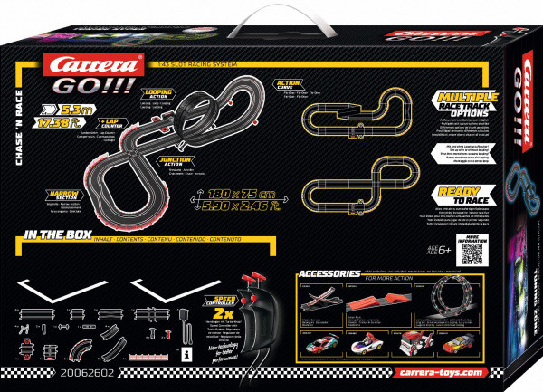 GO!!! – úvodní řada do světa autodráh Carrera. Carrera znamená ve španělštině závod a jedno vám můžeme zaručit. Jakmile rozbalíte krabici s logem Carrera, rozproudí se vaší závodní krev na nejvyšší otáčky, a je jedno na jakém okruhu a s jakým autem budete zrovna závodit. Tento pocit zažívají tisíce fanoušků již od roku 1963, kdy značka Carrera uvedla na trh svou první závodní autodráhu. Během následujících více než čtyřiceti let se v oblasti autodráh, aut a příslušenství Carrera probojovala až na úplnou špičku. Dnes nabízí produkty nejvyšší kvality, které jsou určené nejen dětem, ale i dospělým, pro něž se staly autodráhy hobby na celý život.