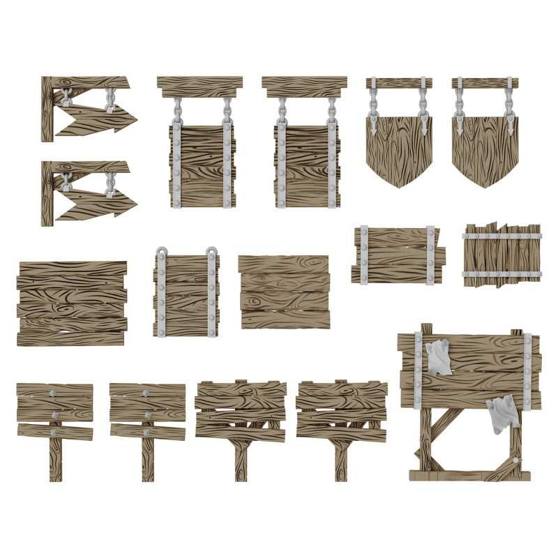 Green Stuff World GSW8435646522296ES - 3D Printed Set Wood Signs – znaki drewniane drukowane w technologii 3D (16 szt.)