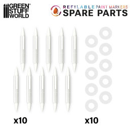 Sada náhradních plstěných hrotů je perfektním řešením pro prodloužení životnosti vašich plnitelných fixů Green Stuff World. Sada obsahuje 10 hrotů, 10 vnitřních houbiček a 10 adaptérů, které vám umožní vyměnit díly opotřebované intenzivním používáním nebo si jednoduše připravit další fixy v různých barvách.