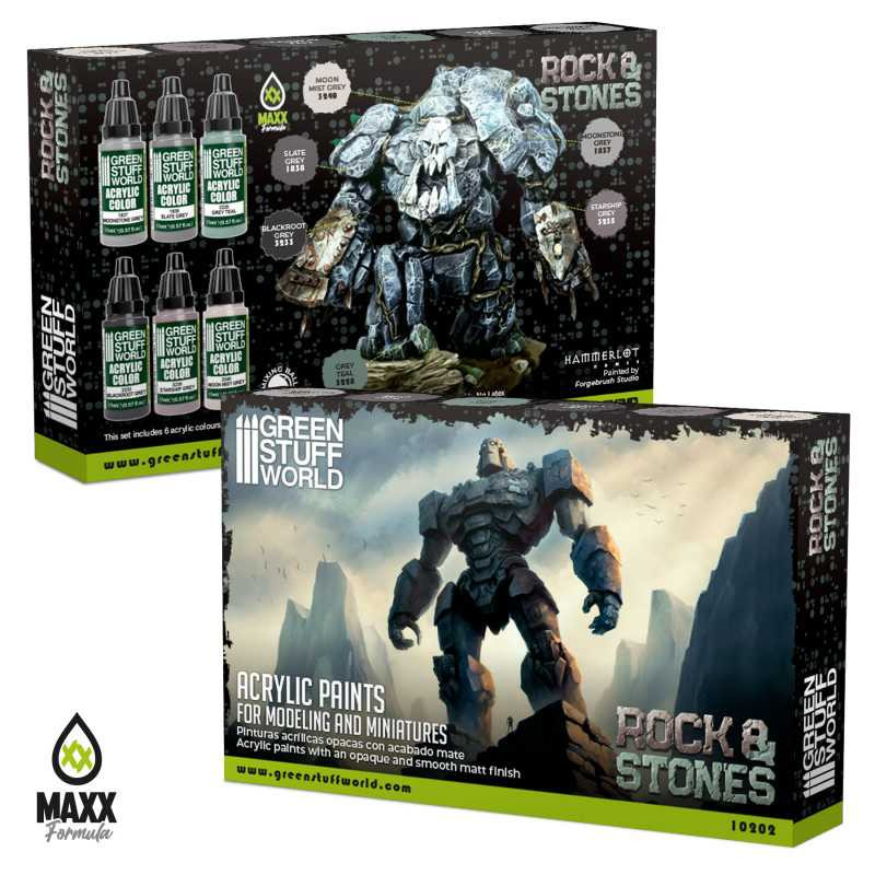 Green Stuff World GSW8436574507010ES - Zestaw farb akrylowych – Rock & Stones (6×17 ml)