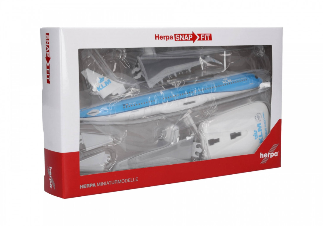 Modele Snap-Fit firmy Herpa zostały pierwotnie zaprojektowane do sprzedaży bezpośrednio na pokładach samolotów pasażerskich. W przystępnej cenie oferują atrakcyjne wykończenie i bardzo przyzwoity poziom wykonania. Modele z serii Snap-Fit są dostępne w skalach od 1:250 do 1:100. W zestawie znajduje się elegancka podstawka do ekspozycji modelu. Szybki montaż modelu nie wymaga użycia kropli kleju.