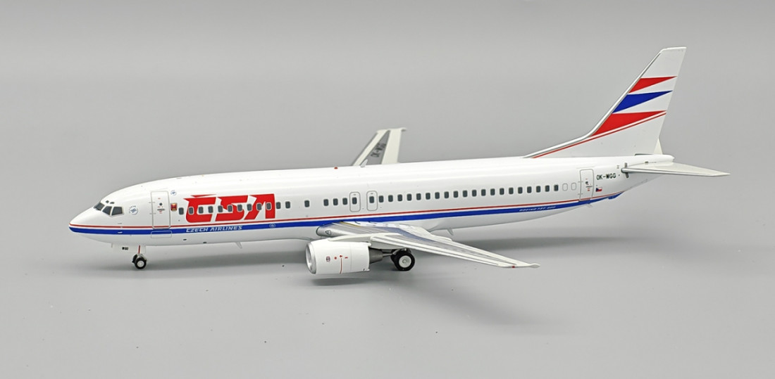 Metalowy model kolekcjonerski samolotu pasażerskiego Boeing B737-4Y0 linii Czeskich Linii Lotniczych, wykonany w skali 1:200 w wysokiej jakości. Model jest już ukończony, nie wymaga montażu ani malowania. W zestawie znajduje się wymienne podwozie i podstawka.