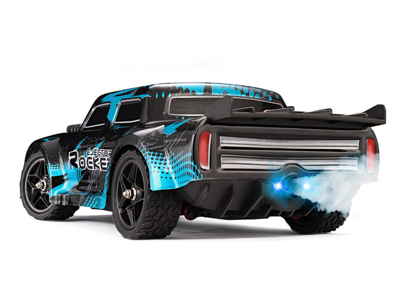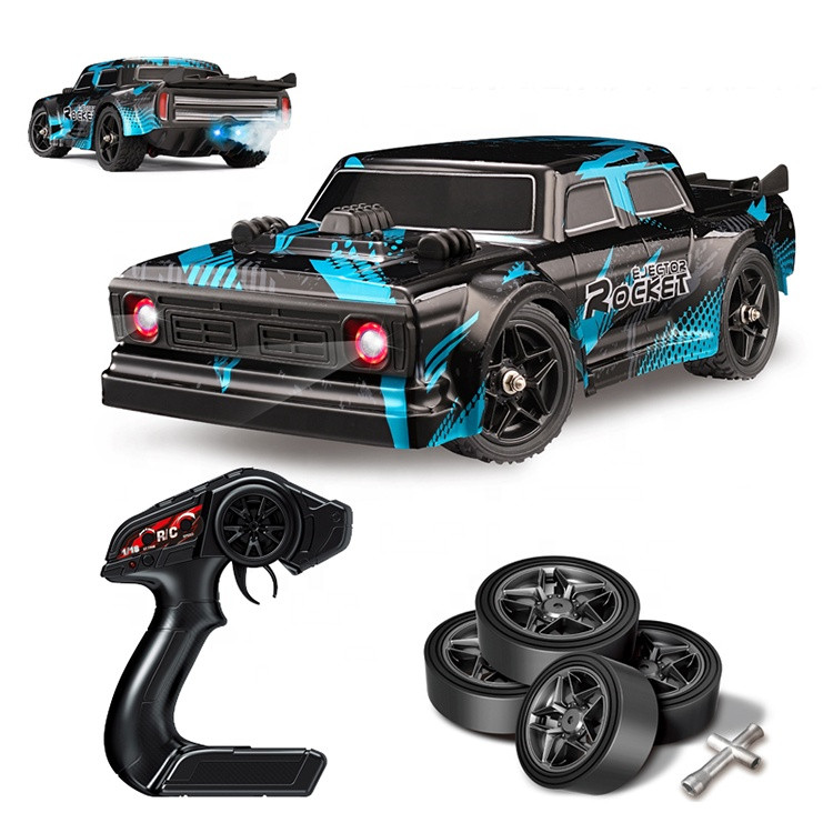 W pełni ukończony zdalnie sterowany model samochodu terenowego w skali 1:16 z napędem na 4 koła i prędkością maksymalną do 36 km/h. Zestaw zawiera nadajnik pistoletowy 2,4 GHz, akumulator litowo-jonowy 7,4 V o pojemności 1200 mAh, ładowarkę USB, zestaw kół do driftu oraz klucz do kół.