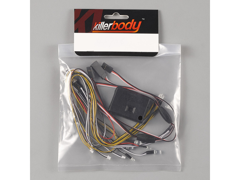 Zestaw świateł Killerbody zawierający łącznie 14 kolorowych diod LED do modeli samochodów zdalnie sterowanych. Diody LED mają średnicę 3 i 5 mm.