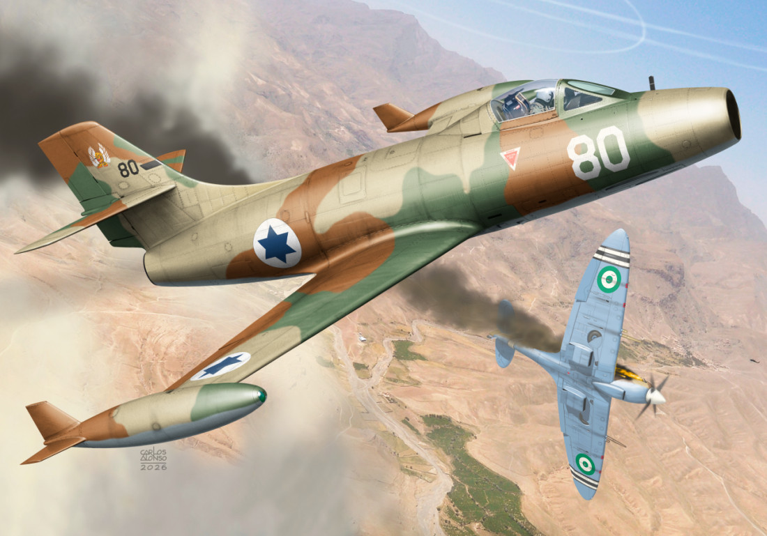 Plastikowy model francuskiego myśliwca odrzutowego Dassault MD.450 Ouragan.