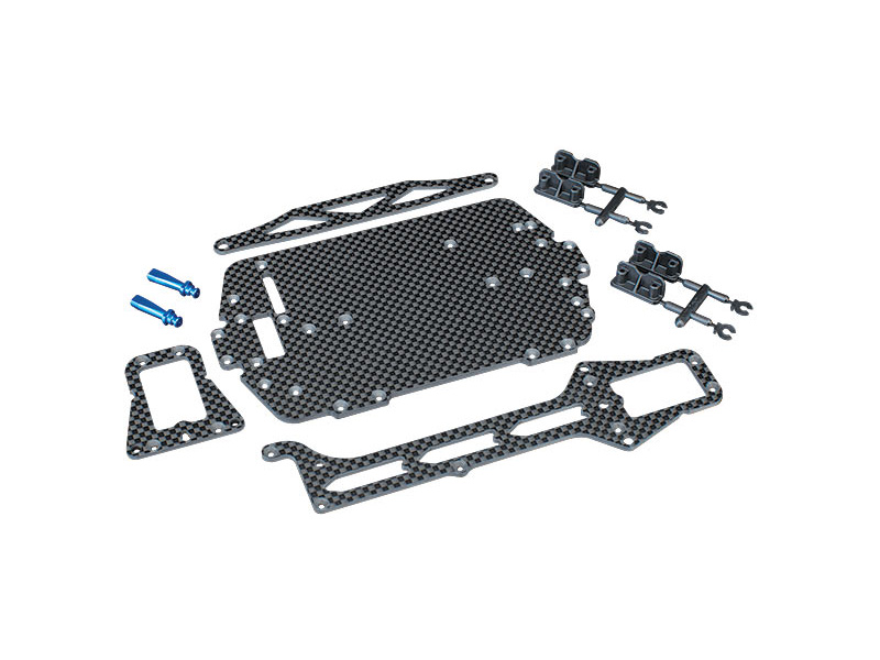 Zestaw konwersyjny Traxxas z włókna węglowego jest przeznaczony do wymiany elementów podwozia w modelach samochodów zdalnie sterowanych LaTrax Rally i Teton.