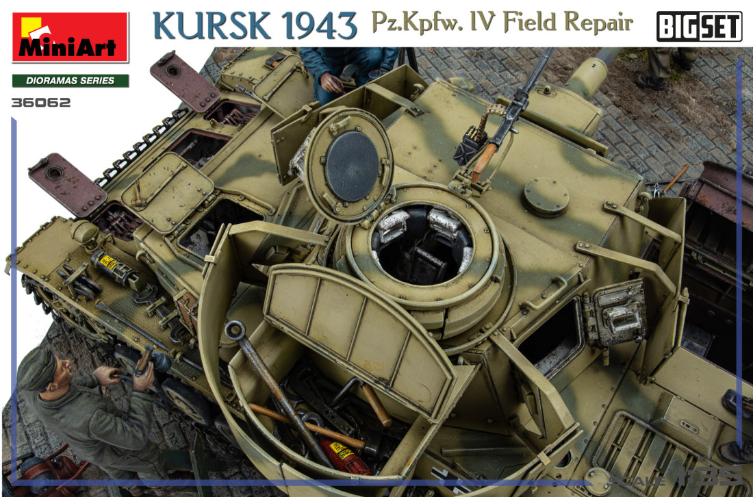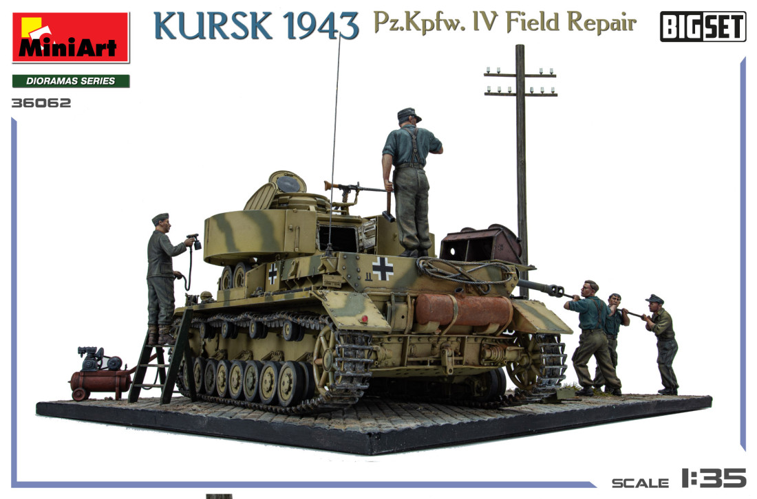 Ten imponujący zestaw przedstawia scenę naprawy niemieckiego czołgu średniego Pz.Kpfw.IV z okresu II wojny światowej podczas bitwy pod Kurskiem w 1943 roku. Ciekawe połączenie sprzętu bojowego, figurek i elementów cywilnych pozwala uchwycić dynamiczne sceny z okresu II wojny światowej.