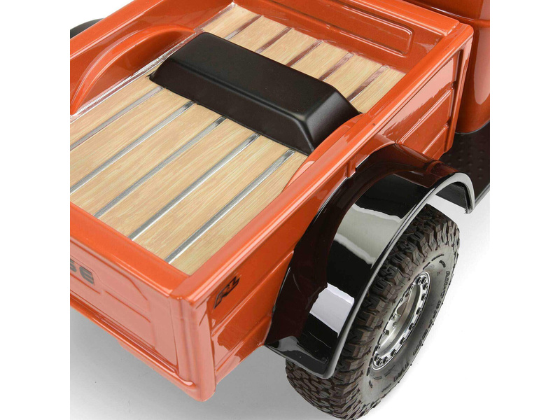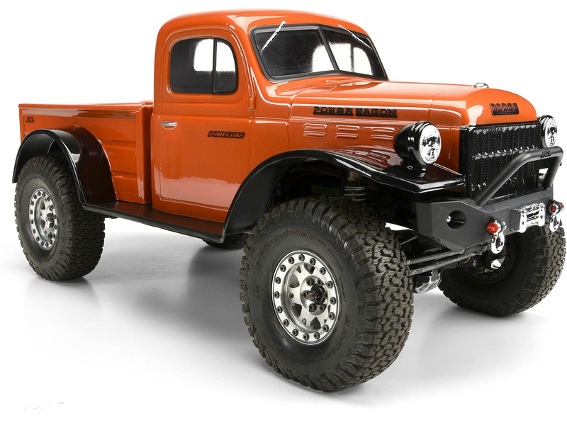 Niesamowite nadwozie historycznego klasycznego samochodu ciężarowego Dodge Power Wagon z 1946 r. Realistycznie szczegółowe dwuczęściowe nadwozie z maską, dużymi błotnikami, chłodnicą i dużą platformą ma oddzielne okrągłe reflektory zaprojektowane tak, aby umożliwić dodanie oświetlenia LED dla uzyskania wyglądu w skali.