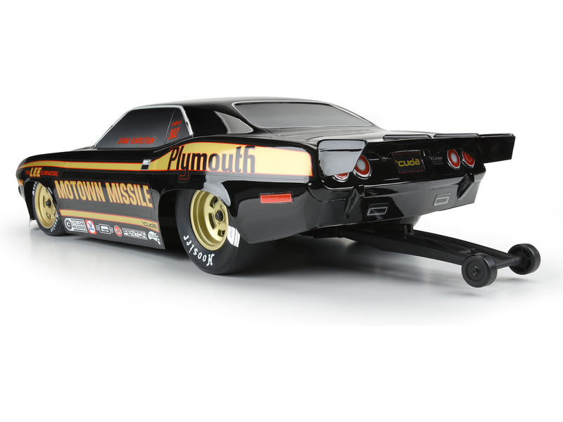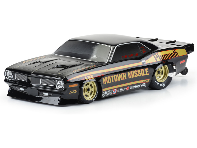 Wyślij zapytanieCzarne nadwozie Pro-Line Plymouth Barracuda 1972 do modeli samochodów RC drag w skali 1:10. Rozstaw osi: 335 mm, długość: 584 mm, szerokość: 292 mm. Aby zapewnić maksymalne wykorzystanie, nadwozie zaprojektowano z węższym rozstawem niż tradycyjne nadwozia SC. Pasuje do Losi 22S, Prep Drag Car i AE DR10, ale samochody 2WD Slash będą wymagały pewnych modyfikacji.