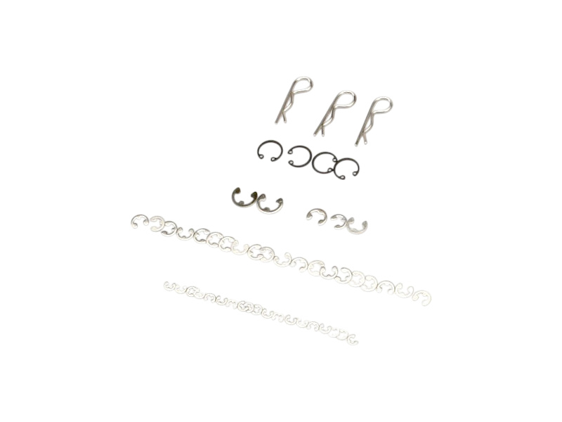 Traxxas - zestaw klipsów i elementów mocujących zawiera 3 klipsy do korpusu, 4 klipsy z otworem 8,5 mm, 3 klipsy do wału 3,2 mm, 2 klipsy 2,5 mm, 28 klipsów 2 mm, 20 klipsów 1,2 mm.